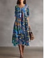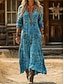 Női Midi Ruha Boho A vonalú Ruha Üdülés Kényelmes Rendszeres Illeszkedés Grafika Paisley 3/4 Hosszú Ujjú V Nyak Kék Khaki Tavasz Ősz