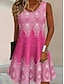 Női mini ruha laza ruha napernyő nyári ruha elegáns laza vakáció mindennapi szabadidő szokásos szabás virágos grafikus boho paisley damaszt ujjatlan V nyakú fuchsiaszín nyár tavasz