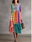 Női Midi Ruha V Nyakú Hosszú Ujjú Kaftán Könnyű Laza Fit A Vonallal Rendelkező Ruha Hétköznapi Boho Parti Laza Fit Grafikai Geometriai Hosszú Ujjú V Nyakú Sárga Rózsaszín Kék Narancs Ősz