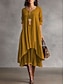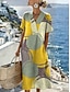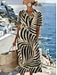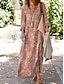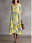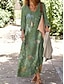 Női maxi ruha vászon jellegű lélegző könnyű kaftán 3/4-es ujjú kerek nyakú laza ruha A-vonalú boho normál szabású grafikus levél sárga rózsaszín kék lila tavasz ősz