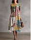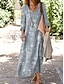 Női Maxi Ruha Vászon Szerű Lélegző Könnyű Kaftán 3/4 Hosszú Ujjú Kerek Nyakú Hétköznapi Ruha A Vonallal Ruha Boho Normál Fit Grafikus Absztrakt Fehér Kék Zöld Khaki Tavasz Ősz