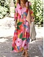 Női Maxi Ruha Vászon Szerű Lélegző Könnyű Nyári Ruha Laza Party Üdülés Rendszeres Fit Virágos Grafika Hosszú Ujjú V Nyak Kék Sárga Piros Narancs Nyár Tavasz