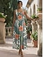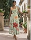 Női Elegáns Midi Ruházat A Vonalú Ruha Becsomagolt Ruha V Nyakú Rövid Ujjú Szabás Virágos Grafika Kék Zöld Sötét Kék