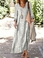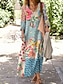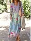 Női Maxiruha A vonalú ruha Szabadság Etno Alkalmi Laza öltözet Virágos Grafika Falevél Háromnegyedes V-alakú Állógallér aqua kék Hamvaszöld Fehér Sötétkék Nyár Tavasz