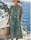 Női Midi ruha hétköznapi ruha Nyári ruha Szabadság Alkalmi Strand stílusok Tengerpart Parti Laza öltözet Grafika Mértani Rövid ujjú V-alakú Lóhere Nyár Tavasz