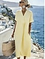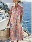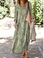 Womens Maxi Ruha Vászon Szerű Lélegző Könnyű Nyári Ruha A vonalú Ruha Vakáció Laza Bohém Ünnep Normál Illeszkedés Virágos Grafika Színblokk Hosszú Ujjú V Nyak Sárga Rózsaszín Zöld Bézs Nyár Tavasz