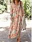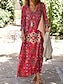 Női Maxiruha Nyári ruha A vonalú ruha Szabadság Alkalmi Boho Parti Szabadság Tengerpart Normál Virágos Grafika Mértani Hosszú ujj V-alakú Sárga Rubin Medence Narancssárga Nyár Tavasz Ősz