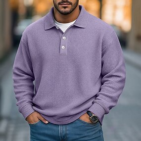 Férfi Gofris pólóingek Texturált Hétköznapi Utca Bordás pólógallér Hosszú ujj Divat Tömör szín Gombok Sima Ősz Tavasz & Ősz Laza öltözet Bíbor Khakizöld Világos szürke Sötétkék Világoskék Gofris