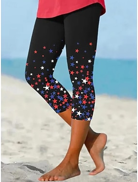 Függetlenség Napja Patrióta Női Capri Nadrág Leggings Nyaralás Vintage Divat Vádli Hosszú Közép Derék Pantalon Grafikus Zászló Zászló Nyomtatás Kényelmes Puha Légies Rugalmas Könnyed Mindennapi