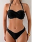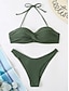 Női bikini 2 részes fürdőruha ráncolt merevítő csajozós karcsú hát nélküli nyaralás strandi viselet egyszínű V-nyakú ujjatlan fürdőruhák