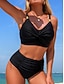 Női Bikini 2 Részes Fürdőruha Színblokkolt Alsók Slim Hátsó nélkülözött Nyaralás Strandruha Színblokk U Nyak Ujjatlan Fürdőruhák
