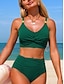 Női Bikini 2 részes Fürdőruha Ráncolt Rövidnadrág Vékony Hátsó Nyitott Elegáns Vakáció Egyszínű V Nyakú Ujjatlan Fürdőruhák