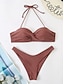 Női Bikini 2 részes Fürdőruha Pántos Vékony Hátsó Nyitott Vakáció Strandruha Egyszínű Nyakpántos Ujjatlan Fürdőruhák