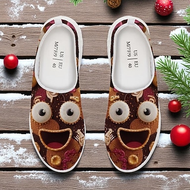 Férfi karácsonyi mézeskalács papucs - vidám ünnepi cipő mézeskalács süti mintával, kényelmes bebújós stílus, tökéletes pihenéshez és hétköznapi téli viselethez