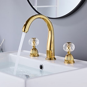 fürdőszobai mosogató csaptelep, széles körben elhelyezett két fogantyú, három lyuk, sárgaréz fürdőcsapok, sárgaréz fürdőszobai mosogató csaptelep hideg és meleg vízzel