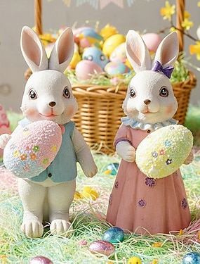 húsvéti nyuszi gyantából készült figura, aranyos rajzfilm nyúl dekoratív szobor, kézzel készített gyantából készült húsvéti dekoráció otthonra, asztalra, kertbe &udvari dekoráció