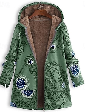 Női Sherpa kabát Hétköznapi dzseki Kényelmes Légáteresztő Nyomtatott Alkalmi Mértani Vakáció Utca Hétköznapi Hétköznapi viselet Nyitott homlok Szokványos Kapucni Normál Hosszú ujj Felsőruházat Rubin