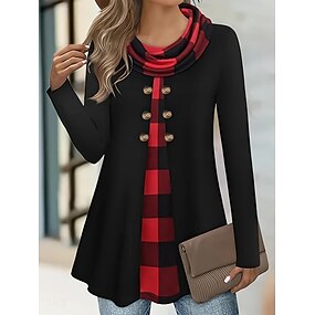 Női Blúz Gombok Nyomtatott Kockás Stílusos Alkalmi Hosszú ujj Kámzsanyak Normál felsők Napi Medence Fehér Rubin Lóhere Khakizöld Tavasz Ősz Tél
