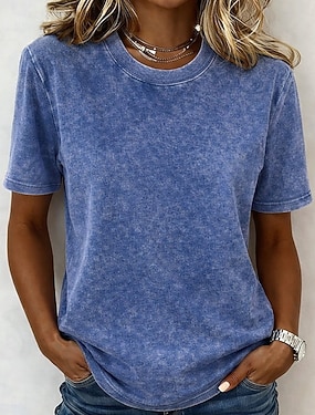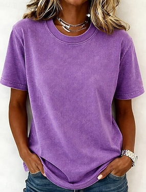 Női 100% pamut T-Shirt vintage mosott felsők póló sima vintage divat stílusos rövid ujjú kerek nyakú normál felsők napi szórakozás hétvége kék fekete lila fuksziás narancs