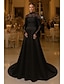 Szűk szabású Estélyi ruhák Elegáns Formális ruha Előírásos Esküvő Földig érő Hosszú ujj Állógallér Bársony val vel Rakott 2025