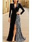 A-vonalú Szűk szabású Örömanya ruha Elegáns Szüret Pazar V-alakú Földig érő Spandex Flitteres Poliészter Hosszú ujj val vel Flitter Szín