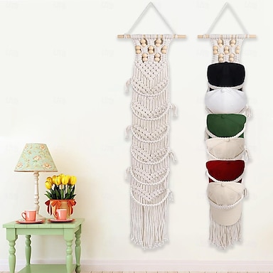 bohém kalaptartó pamut akasztós rendszerező sapkákhoz és sálakhoz gobelin sapkatartó fali dekoráció sapkatartó rendszerező akasztós kalaptartó tároló sapkatartó kalapbemutató állvány fal