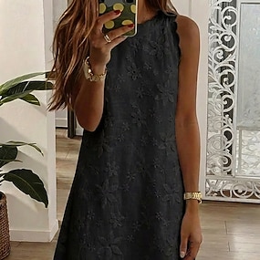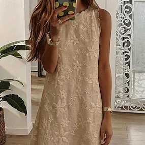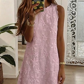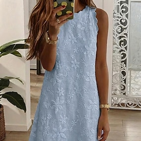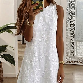 Női Térdig érő ruha Fehér ruha Eyelet ruha Elegáns Divat Modern Szabadtéri Vakáció Alkalmi Normál Sima Ujjatlan V-alakú Fehér Világoszöld Arcpír rózsaszín Sötétzöld Nyár Tavasz