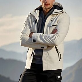 Férfi Polár esőkabát Téli kabát Planinarska jakna Windcheater dzseki Szabadtéri Szabadtéri sport Vízálló Vjetrovka Zseb Levehető motorháztető Ősz Tél Tömör szín Aktív Sportos Kapucni Rövid Fekete