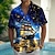 Férfi Régies (Vintage) Csillagos égbolt Csónak Hawaii ing Gombos póló Aloha ing Rövid ujjú Hawaii Hétköznapi Vakáció Nyár Tavasz Térfogatcsökkenés 3D nyomtatás galléros ingek Első egy zseb Sötétkék