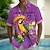 Férfi Madár Papagáj Ing Hawaii ing Gombos póló Rövid ujjú Hawaii Vakáció Szabadság Strandruházat Nyár Tavasz Térfogatcsökkenés 3D nyomtatás galléros ingek Sárga Medence Bíbor Lóhere