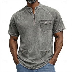 Férfi Henley ing 100% Cotton Acid Wash ing Rövid ujjú Sima Egyszínű Szüret Retró Alkalmi Cipzár Régies stílus Ruhafesték Henley Hétköznapi Tavaszi nyár Nyár Tavasz Fekete Rózsaszín Világoszöld Henley