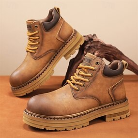 férfi strapabíró munkabakancs – csúszásgátló bőr biztonsági lábbeli ütéscsillapító külső talppal építési, tereprendezési és kültéri munkákhoz