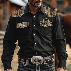 Férfi Álcázás Nyugati ing Hosszú ujj Nyugati Szabadtéri sport Tavasz Ősz Térfogatcsökkenés Begombol 2 zseb Fekete