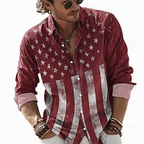 2026. július 4. 250. Férfi Amerikai amerikai zászló Póló Hosszú ujj Pólóingek Hajtóka Alkalmi Szabadtéri Sportruházat Fesztivál öltözék 3D nyomtatás Gombok Tavasz Ősz Medence Rubin Bíbor