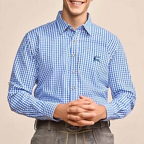 Oktoberfest Kockás mintás Lederhosen ing Bajor címer bajor Német Meadows Férfi Farsang Sörfesztivál Hagyományos stílusú ruha Ing
