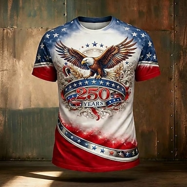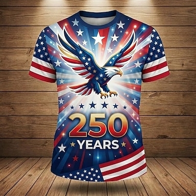 2026. július 4. 250. Emléknap Férfi hazafias retro tervező hazafi grafika 3D nyomtatás nemzeti zászló veterán crew neck rövid ujjú póló