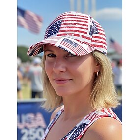 Női hazafias poliészter baseballsapka, több stílusú amerikai zászlómintával, állítható szabású sapka az USA 250. évfordulójára, a függetlenség napjára és mindennapi viseletre