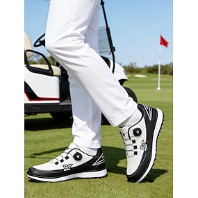 férfi stílusos fehér és fekete golfcipők – prémium műbőr, tartós, tökéletes golfozáshoz és professzionális szabadtéri rendezvényekhez
