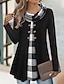 Női Ing Blúz Kockás Modern Alkalmi Hosszú ujj V-alakú Normál felsők Szabadság Alkalmi Sárga Rubin Bíbor Narancssárga Lóhere Ősz
