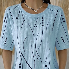 Női Blúz Aszimmetrikus Hem Alap Absztrakt Nyomtatás Rövid Ujjú Hosszú Felsők Kerek Nyak Kényelmes Ezüst Fekete Fehér Kék Khaki