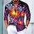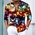 Férfi 3D nyomtatás Láng Ing Gombos póló Lezser ing Hosszú ujj Alkalmi Szabadtéri Szabadság Nyár Tavasz Térfogatcsökkenés 3D nyomtatás galléros ingek Fekete Rubin Bíbor Lóhere