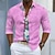 Férfi Ing Vászon ing Nyári póló Strandruházat Gombos póló Sima Vakáció Hétköznapi Fekete Fehér Arcpír rózsaszín Medence Hosszú ujj Gallér Tavaszi nyár Ruházat