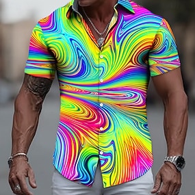 Férfi Mértani Színes Kollázs Ing Gombos póló Lezser ing Rövid ujjú Alkalmi divat Utcai öltözék Vakáció Tavasz Ősz Térfogatcsökkenés 3D nyomtatás galléros ingek Medence Bíbor Narancssárga Lóhere