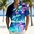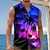 Férfi Kókuszfa Trópusi növények Neonfény Ing Hawaii ingek Aloha ing Rövid ujjú Hawaii Vakáció Strandruházat Nyár Térfogatcsökkenés 3D nyomtatás Első egy zseb Vászonszerű ing Bíbor Sötétkék Sötétlila