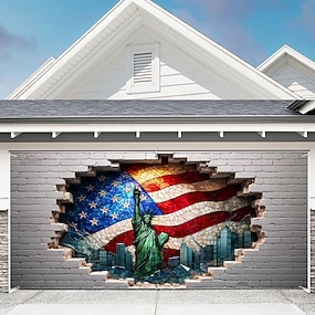USA 250. évfordulós garázskapu-takaró 3D optikai illúzió nyomat Szabadság-szobor amerikai zászlóval hazafias dekorációval félszázados évforduló ünneplésére július 4-én a függetlenség napja