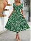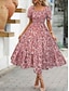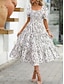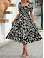 Női Midi ruha hétköznapi ruha Virágos ruha Elegáns Divat Modern Szabadtéri Vakáció Alkalmi Normál Virágos Rövid ujjú Szögletes Medence Fekete Fehér Arcpír rózsaszín Nyár Tavasz