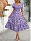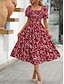 Női Midi ruha hétköznapi ruha Swing ruha Virágos ruha Elegáns Divat Modern Szabadtéri Vakáció Alkalmi Normál Ditsy virágos Rövid ujjú Szögletes Medence Fekete Rubin Bíbor Nyár Tavasz