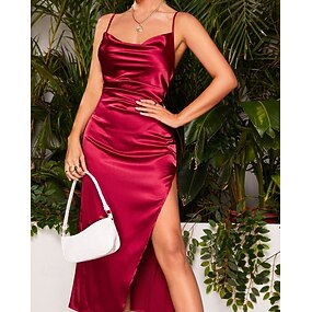 Női Midi ruha Party ruha Koktélruha Szatén ruha Slip ruha Elegáns Modern Parti Különleges alkalom Estély Normál Sima Ujjatlan Szíj Fekete Arcpír rózsaszín Bor Sötétkék Nyár