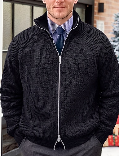 Férfi Kardigán Cipzáras pulóver Pulóver dzseki Karácsonyi pulóverek Karácsonyi pulóver Vaskos Kötött Cipzár Bordázott Tömör szín Álló gallér Karácsony Kötöttáru Hétköznapi viselet Randi Ruházat
