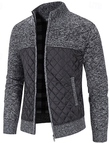 Férfi Pulóver Kardigán Bordázott Kötött Normál felsők Kötött Mértani Álló gallér Modern Kortárs Laza elegáns Hétköznapi Hétköznapi viselet Ruházat Ősz Tél Világosszürke Stétszürke M L XL